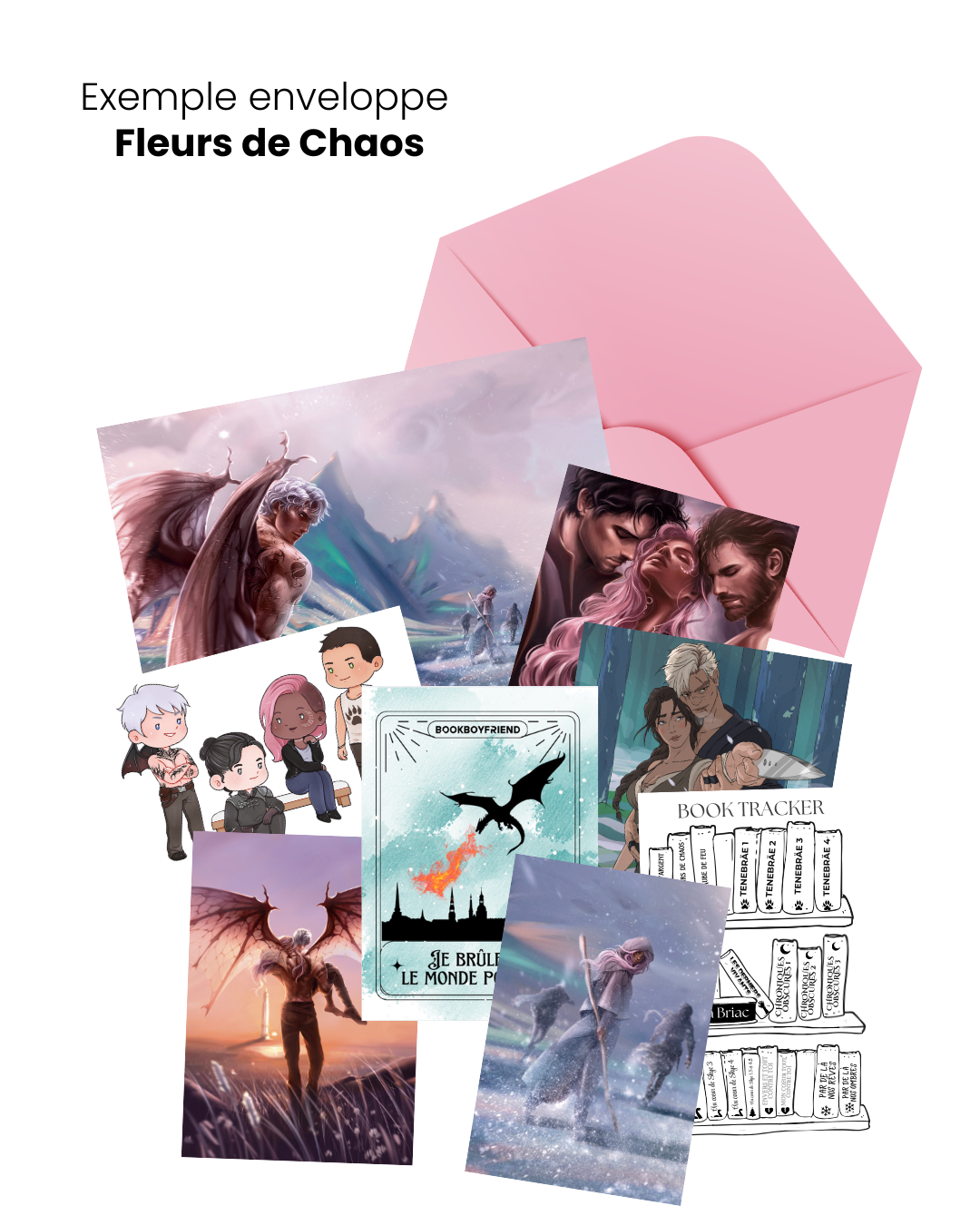Chaque enveloppe est liée à l’un de mes romans et contient des illustrations exclusives.
